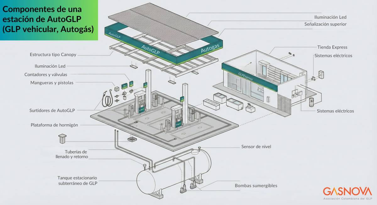 Pero ¿cómo funciona realmente una estación de AutoGLP? La Asociación Colombiana de GLP explica que detrás de cada carga existe una infraestructura diseñada bajo estrictos estándares técnicos y de seguridad que permiten almacenar, transportar y despachar un combustible que se mantiene en estado líquido gracias a la presión.