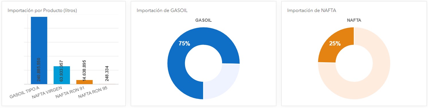 Según los datos obtenidos por Surtidores Latam por medio del Observatorio del Mercado de los Combustibles del Ministerio de Industria y Comercio, el total de carburantes importados alcanzó 319.7 millones de litros, de los cuales 240.9 millones correspondieron a Gasoil Tipo A (75% del total) y 78.8 millones a Nafta (25%).