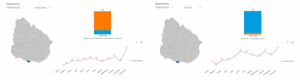 Según las estadísticas a las cuales accedió Surtidores, en ambos productos, Montevideo se consolida como el principal centro de consumo del país. En naftas, el departamento capitalino cerró diciembre del año pasado con alrededor de 30 mil metros cúbicos vendidos, el máximo del año. En gasoil, los volúmenes mensuales alcanzaron picos cercanos a los 18 mil m³, muy por encima del resto de los departamentos.
