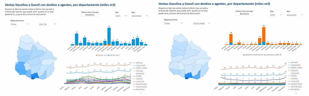 El nuevo reporte interactivo de ventas de combustibles de ANCAP, aportó una radiografía precisa del consumo de gasoil y gasolinas en Uruguay. Los datos, actualizados a diciembre de 2025, confirmaron una tendencia estructural del mercado.
